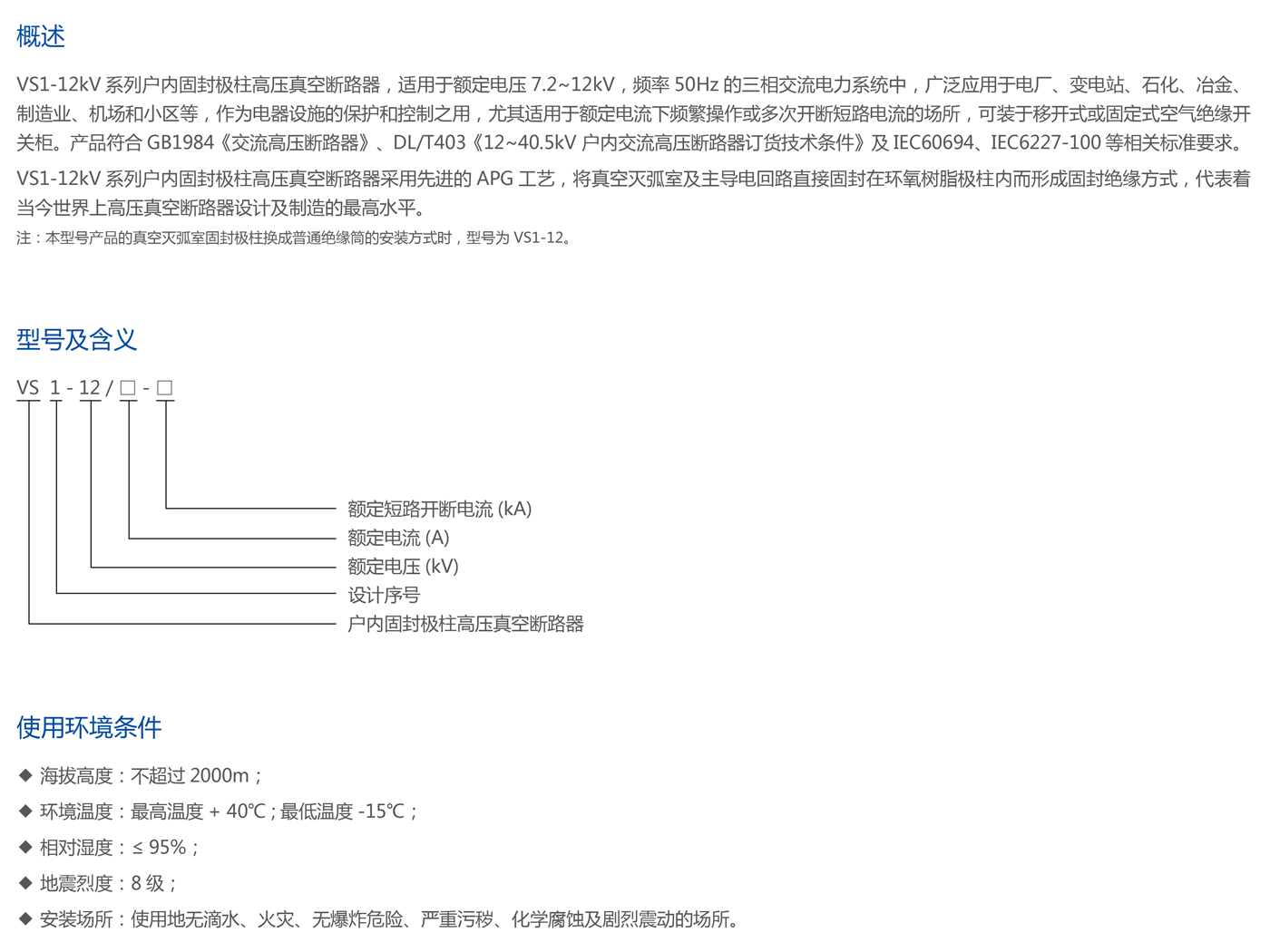 VS1-12戶內(nèi)固封極柱高壓真空斷路器