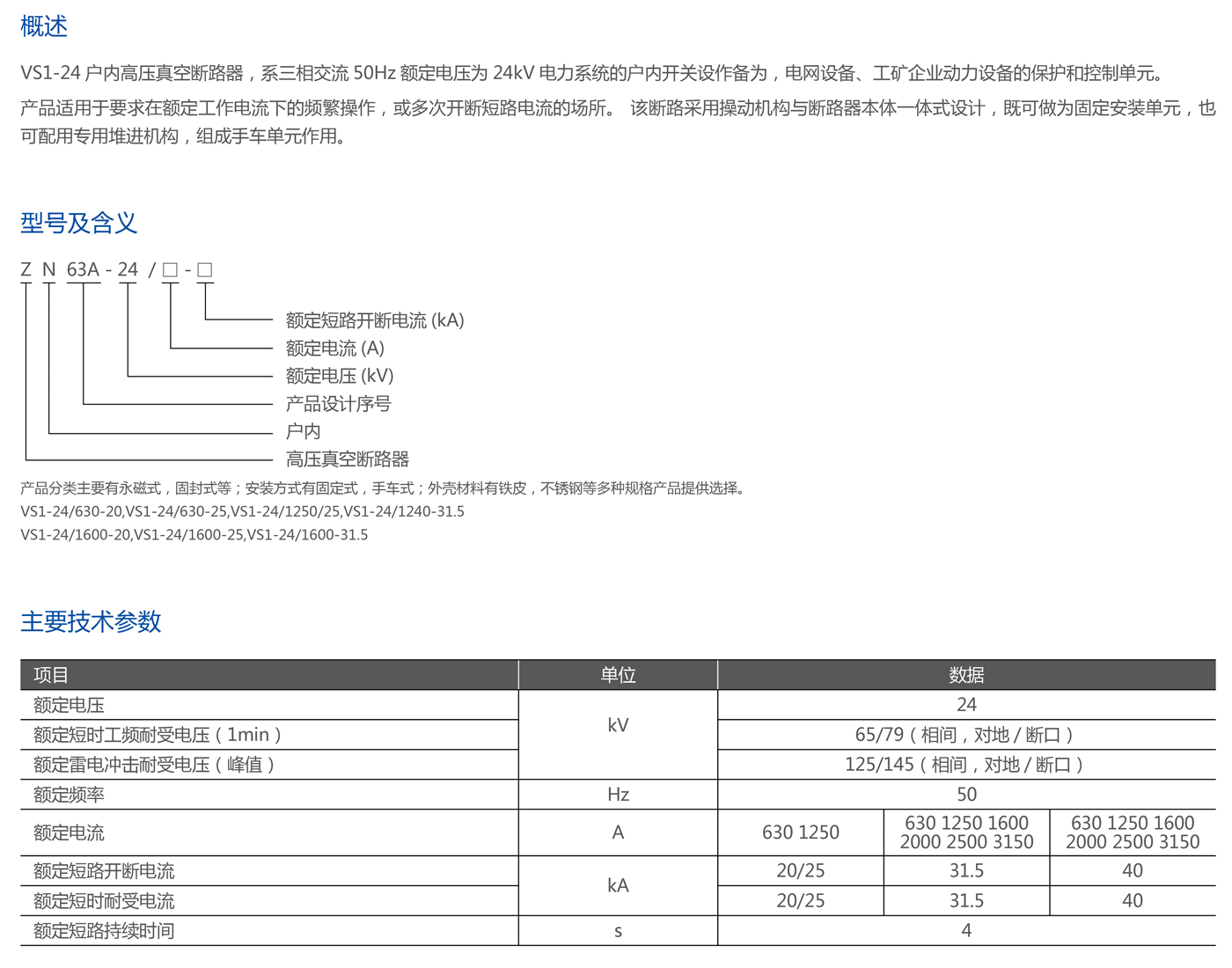 ZN63A(VS1)-24戶內(nèi)高壓真空斷路器